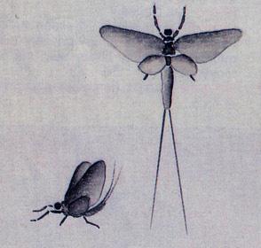est censée représenter une petite éphémère (epeorus) au stade subimago et/ou imago,