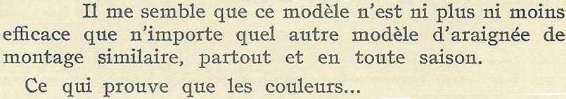 Il est à noter cependant que ce même Pequegnot écrit dans le même ouvrage (l'art de la pêche à la mouche sèche) ce commentaire qui est à la charge de cette mouche qu'en l'occurence il ne vise pas particulièrement, en tous cas qu'il ne cite pas nommément...